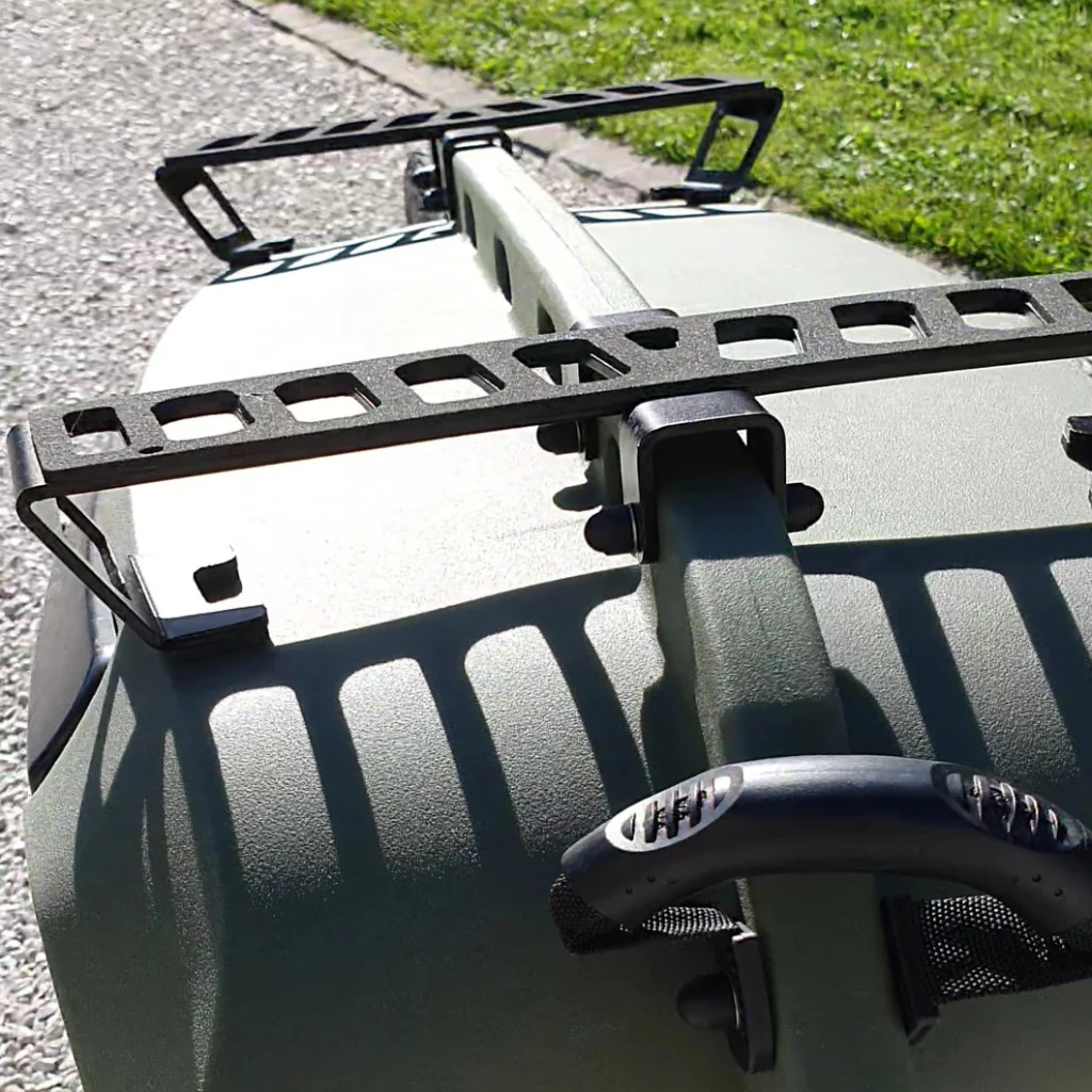 Les barres de toit en aluminium conçues pour la remorque Kern SolarMoov sont l’accessoire idéal pour transporter votre surf ou tout autre objet long en toute simplicité à l’aide de sangles ajustables. Vous pouvez sécuriser votre chargement en toute confiance, même sur les routes les plus chaotiques. Avec leur poids léger et leur revêtement en mousse EVA anti-dérapante, ces barres offrent un maintien optimal tout en protégeant vos biens contre les rayures et les chocs.