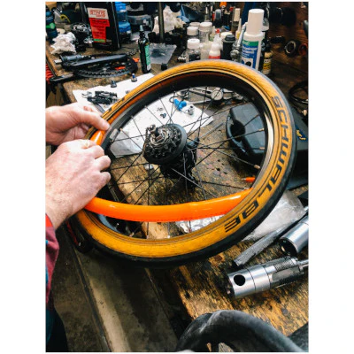 Tubolito, marque très connue pour ses chambres à air résistantes, légères et compactes, a sorti une gamme pour les vélos pliants. Cette chambre à air peut se monter sur n’importe quel vélo pliant dont ceux de la marque Brompton. La chambre à air est conçue en matière élastomère de polyuréthane thermoplastique, matière utilisée dans la conception de membranes de haut-parleurs de smartphone. C’est grâce à cette matière si spéciale que les chambres à air Tubolito sont aussi résistantes aux crevaisons, compactes et légères.