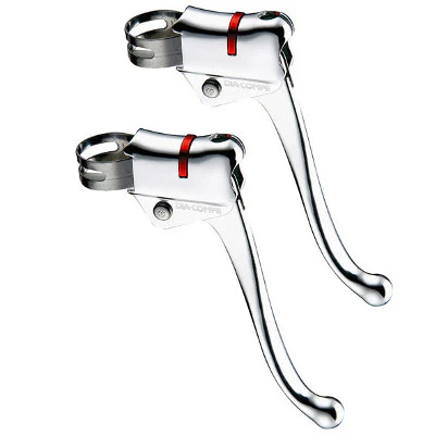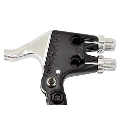 Pesant 131 g, la poignée de freinage est composée en fonte d’aluminium. Très résistante, elle permet de gagner de la place en toute sécurité. Convenant uniquement pour le côté droit, elle se monte sur un guidon de 21 à 22,2 mm de diamètre. Il est conseillé de monter la câble de frein arrière dans l’emplacement le plus haut et le câble de frein avant dans celui du bas. Ce montage permet un freinage plus puissant à l’arrière comme cela est recommandé.