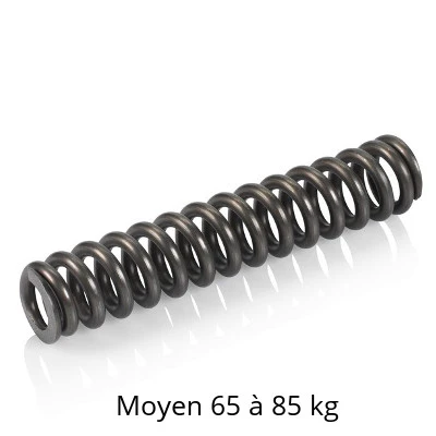 - Le ressort noir est le ressort dur. Il est, quant à lui, conseillé pour les cyclistes pesant entre 85 et 100 kilos.